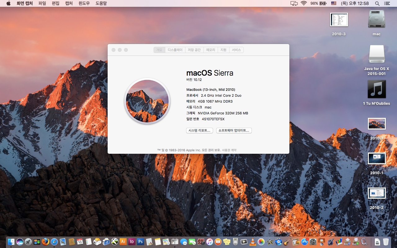 2010년 화이트 맥북 13인치- 맥 디자인프로그램들이 사진처럼