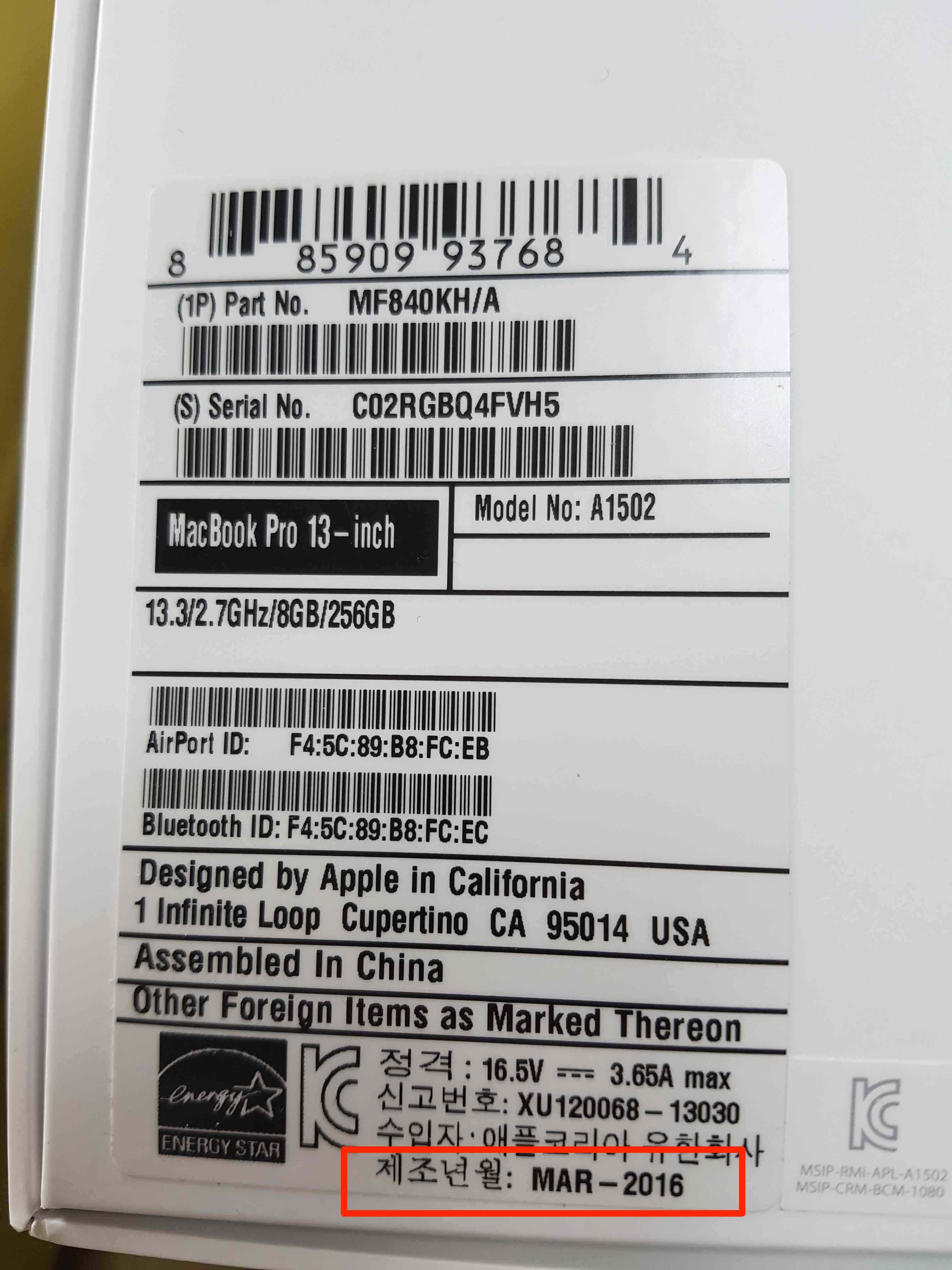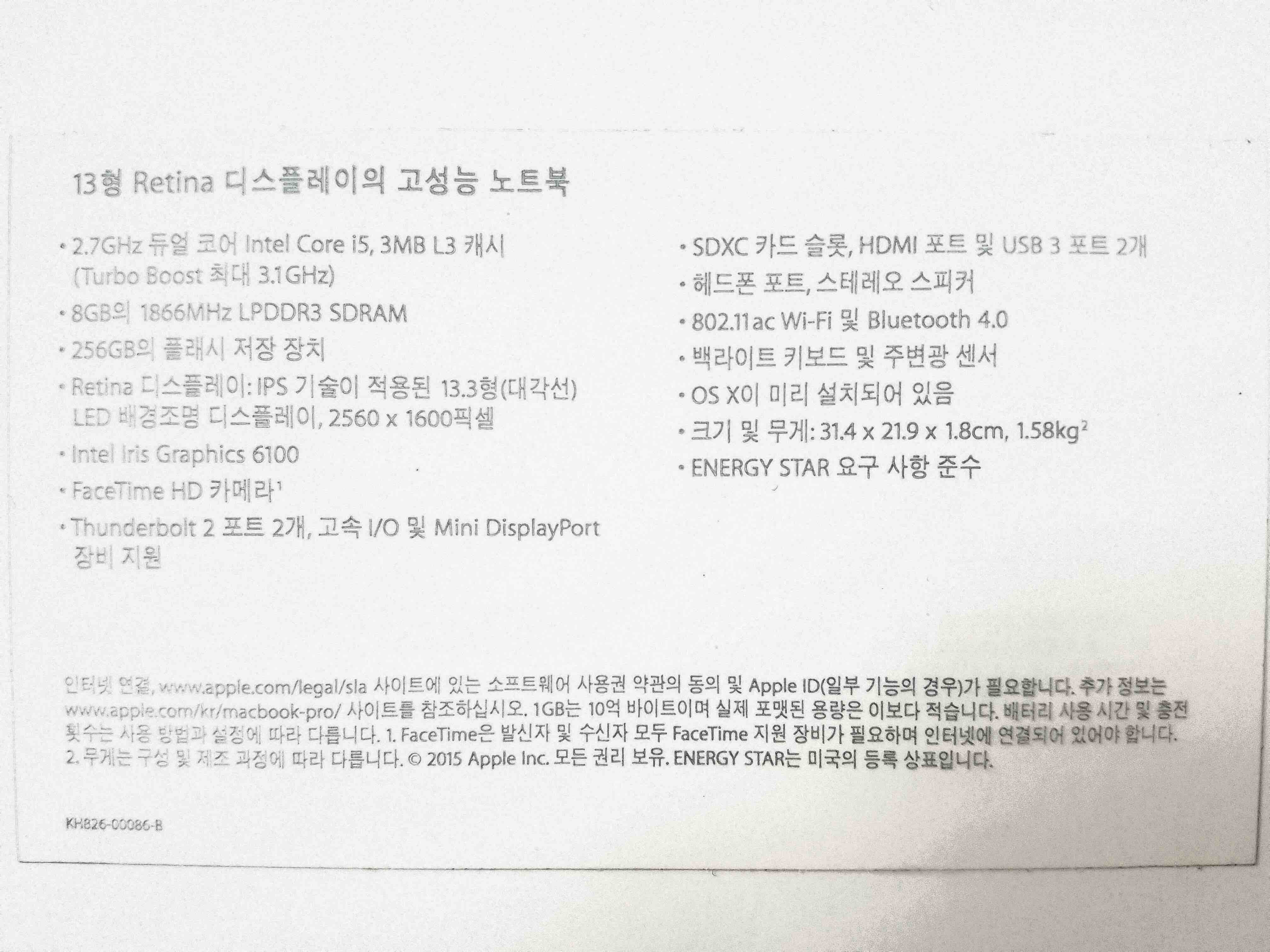 2015 맥북프로(MF840KH/A_레티나_13.3인치_256/8G_5개월사용)