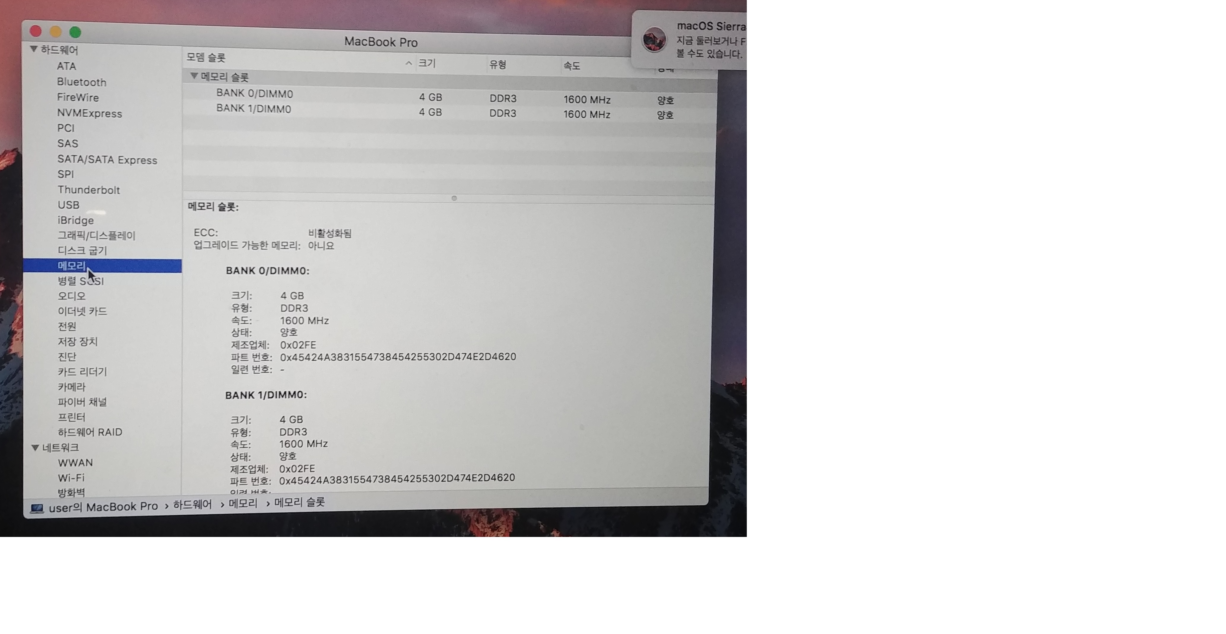구매했던 스펙 그대로 입니다.